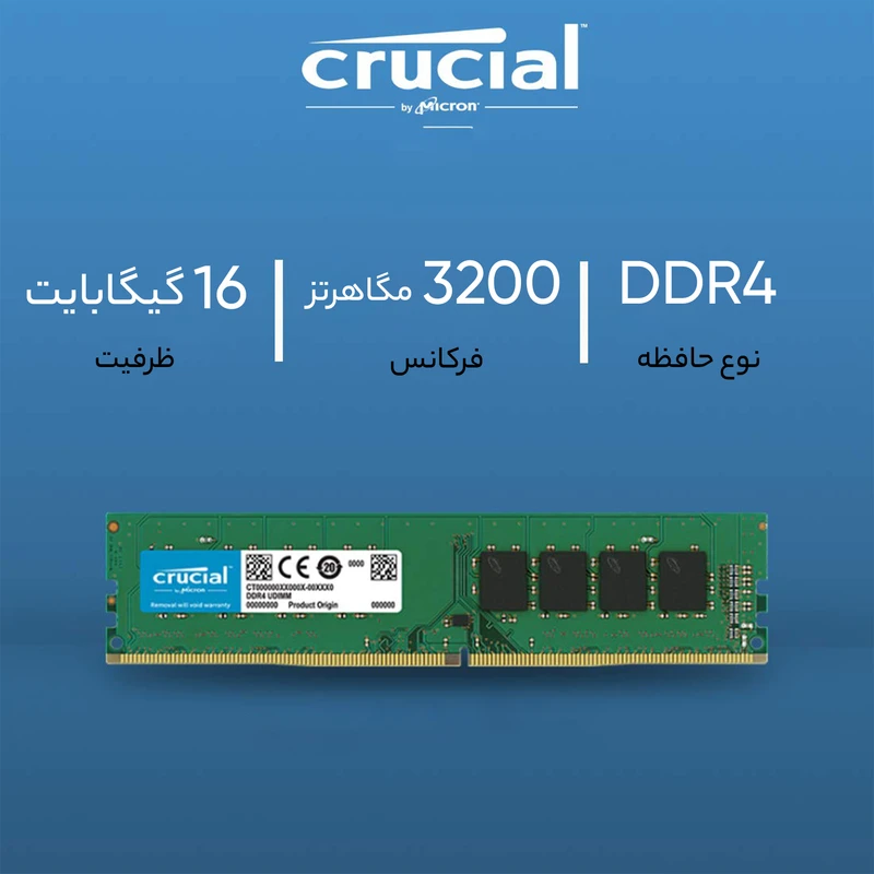 رم کامپیوتر DDR4 دو کاناله 3200 مگاهرتز CL22 کروشیال مدل CT16 ظرفیت 16 گیگابایت