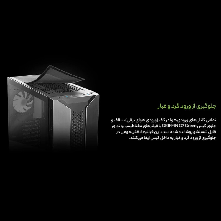 توضیحات سیستم خنککننده: ۷ عدد فن ۱۲۰mm فوق العاده کم صدا در قسمت جلو، سقف و پشت کیس (ARGB)